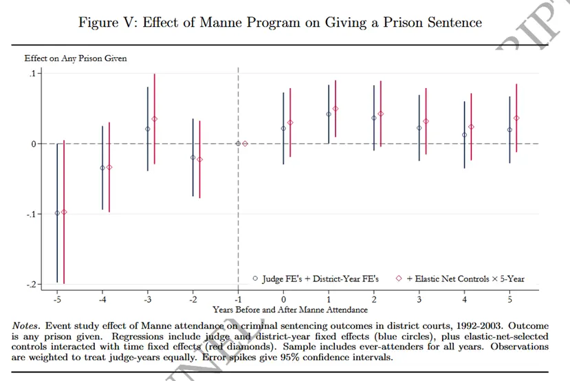 文章分析了法官在参与经济培训后的判决行为改变。文章发现,参加经济学培训后,参与的法官在意见中使用了更多经济学语言,更频繁地反对监管机构,并实施了更严厉的刑事判决。文章不仅探索了法与经济学交叉的现实效果,也验证了经济思想说服的力量。