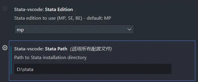 需要的额外设置也很简单,只需要在 stata MCP 的设置页面输入自己安装 stata 的文件夹目录: