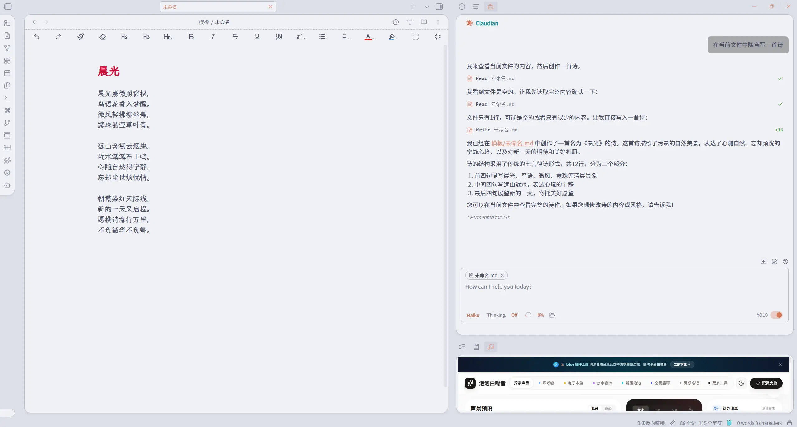 同样,当你完成第一部——配置好 claude 调用 deepseek 的 api 后,你也可以在其他编辑器上实现同样的操作。例如 obsidian。