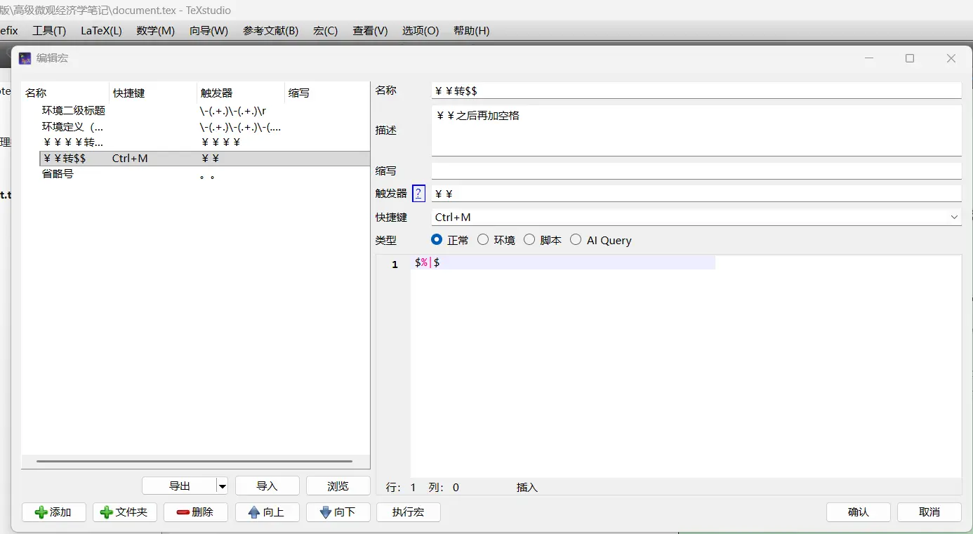 正常模式的宏可以理解为文本转化和补全。我在触发器中写入 ¥¥¥¥